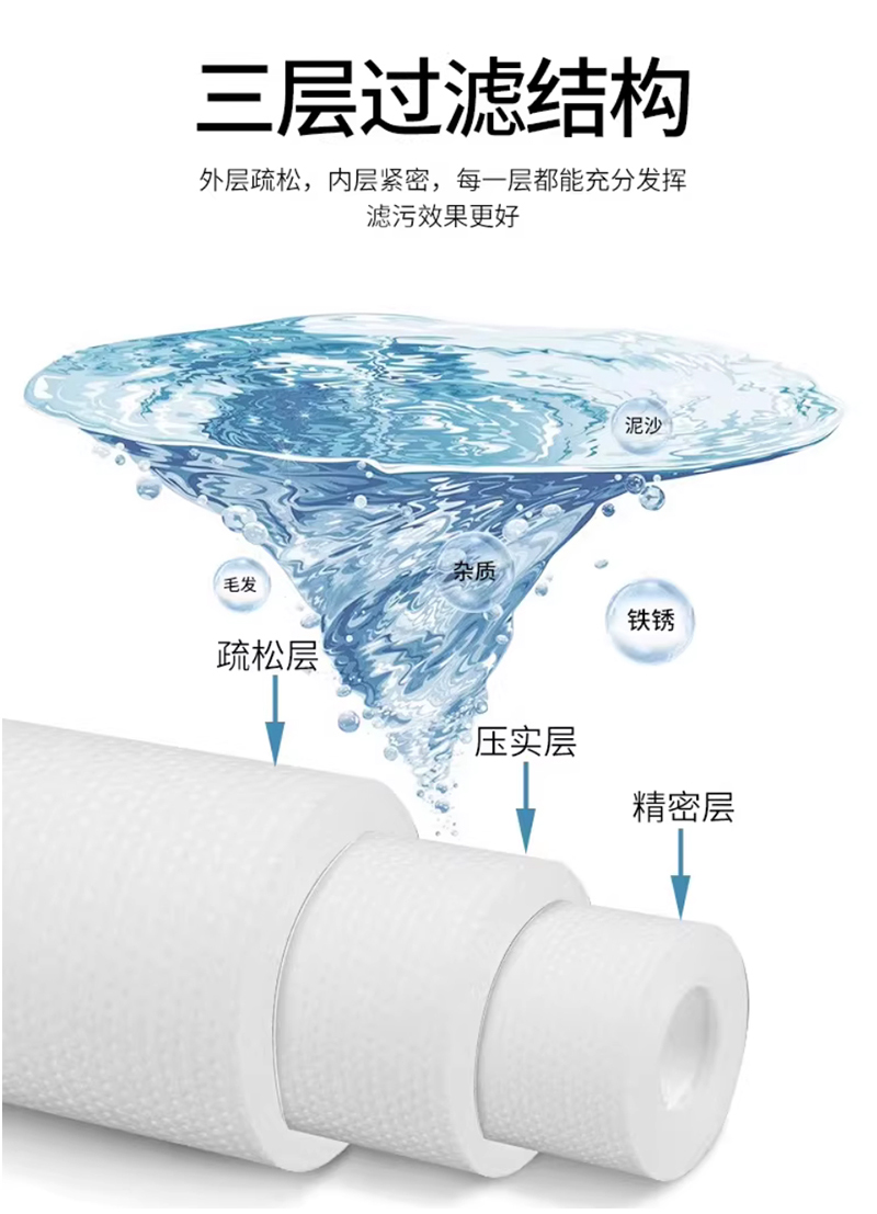 家用净水:作为前置过滤,保护RO膜。