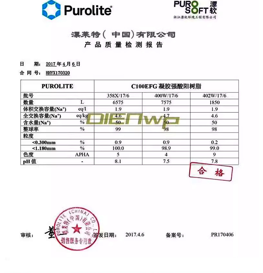 Purolite漂莱特C100EFG食品级树脂,确实是食品和饮用水处理领域的一款高性能软化树脂,核心特点就是高交换容量、快速反应效率和优良的机械强度,专为食品级应用设计,不含致癌物,符合严格的食品安全标准。
